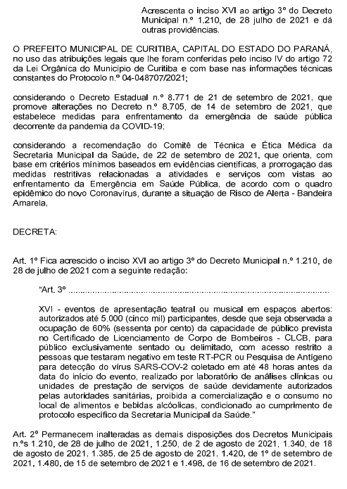 Altera o Decreto n° 1.210/2021, que dispõe sobre medidas restritivas a atividades e serviços para o enfrentamento da Emergência em Saúde Pública, conforme o quadro epidêmico do novo Coronavírus (COVID-19) e a situação de Risco de Alerta - Bandeira Amarela