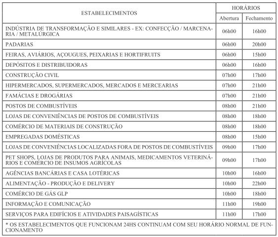 VI – observar os horários de funcionamento previstos no ANEXO II deste Decreto.