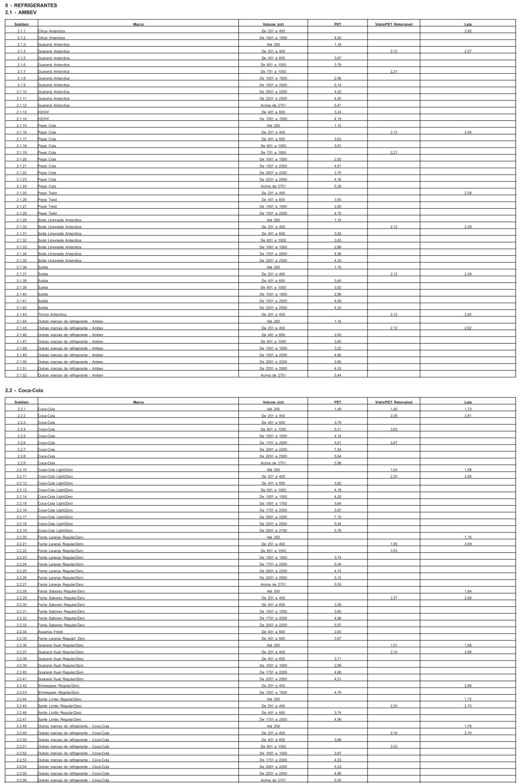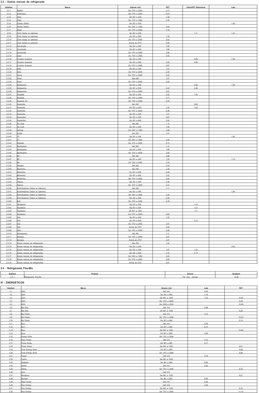 § 2° Incluem-se no Anexo Único, a que se refere o caput deste artigo, as embalagens com volumes que apresentem variações de até 10% (dez por cento).