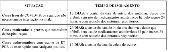 Art. 78. Consideram-se nesta Resolução para o tempo de isolamento dos casos confirmados da COVID-19: